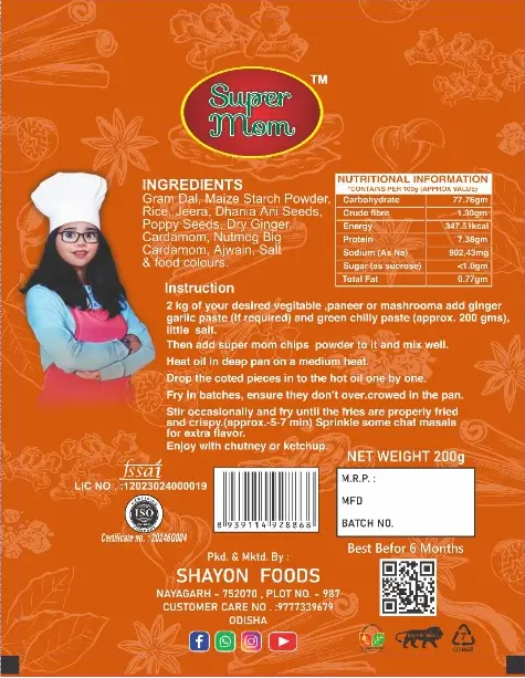 At Shayon Foods, we bring you the authentic taste of India with our premium Super Mom Instant Mix Pakora Powder & Chips Powder Pakora Powder. Here’s why we stand out: Try Shayon Foods’ Instant Mixes today and experience crispy, delicious pakoras with minimal effort!